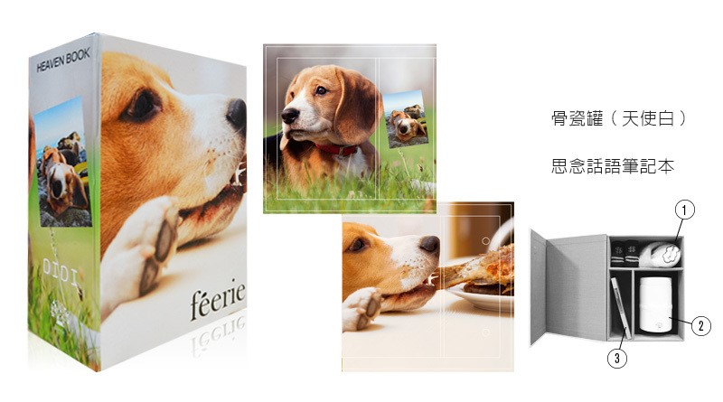 思念話語筆記本、feerie骨瓷罐(天使白),並享有翡翠森林八大禮儀服務。